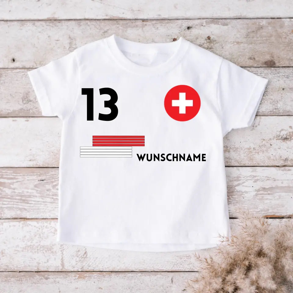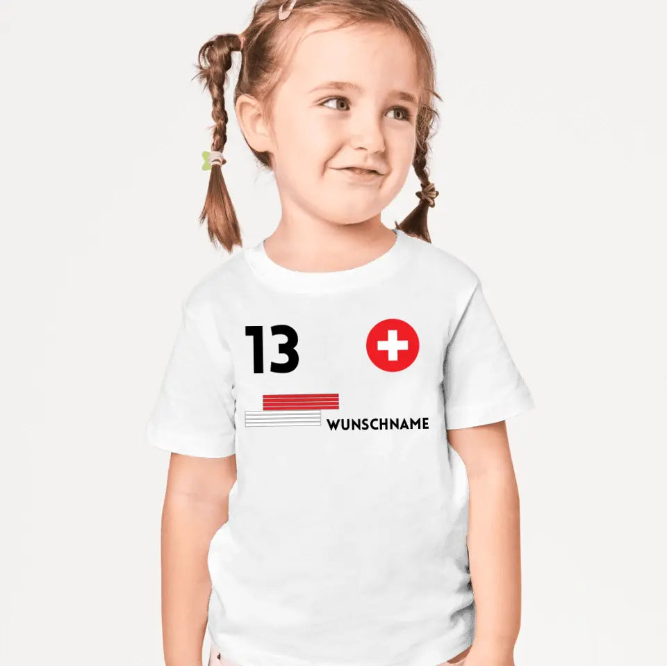 Fußball Schweiz Trikot Kinder individuell - Personalisiertes T-Shirt für Kinder (100% Baumwolle)