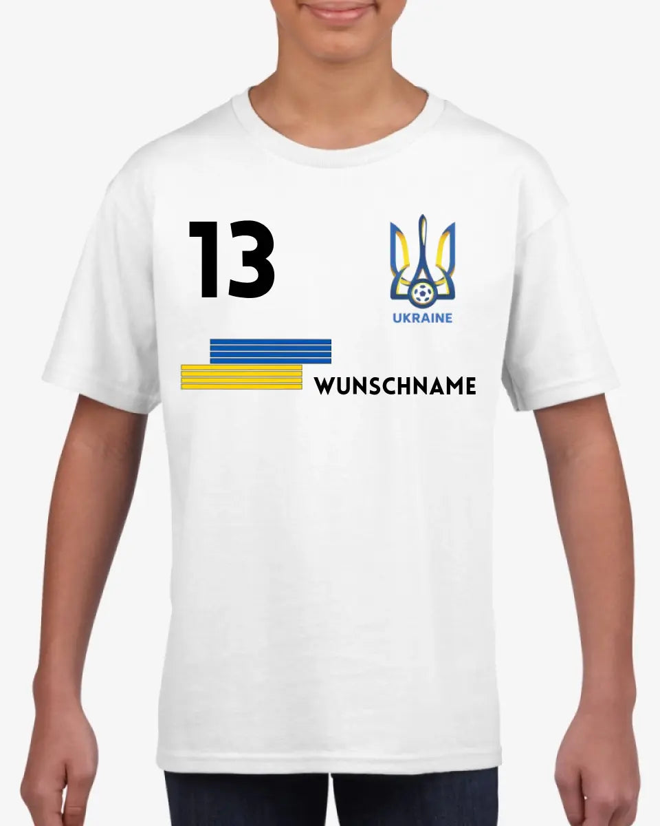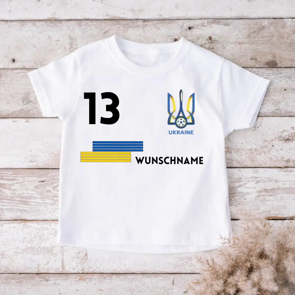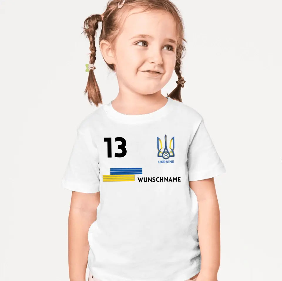 Fußball Ukraine T-Shirt Kinder individuell - Personalisiertes Trikot für Kinder (100% Baumwolle)