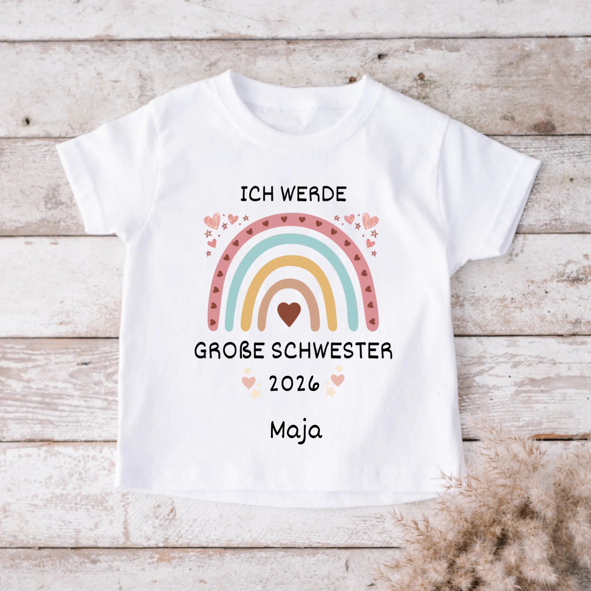 Ich werde große Schwester/ großer Bruder - Personalisiertes T-Shirt Kinder, Geschwister, Baby, zur Geburt (100% Baumwolle, unisex)