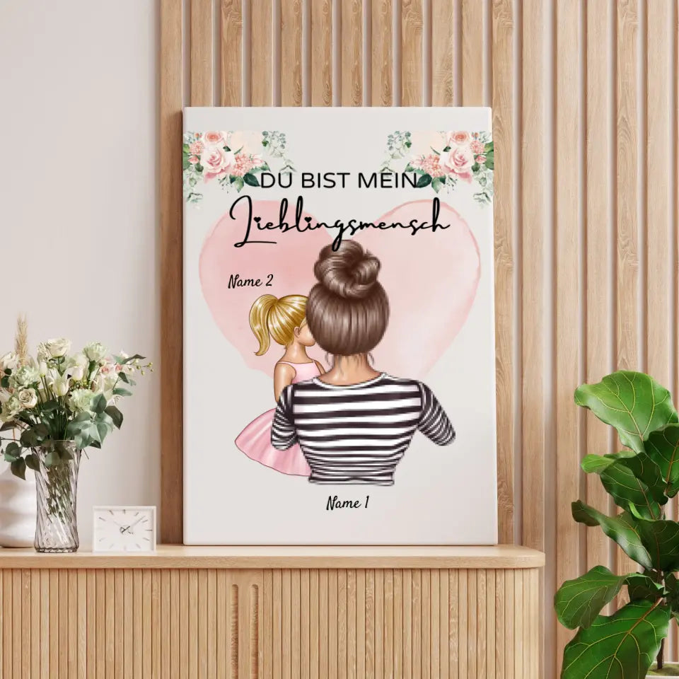 Mama, mein Lieblingsmensch - Personalisierte Leinwand (Mutter mit 1-4 Kindern)