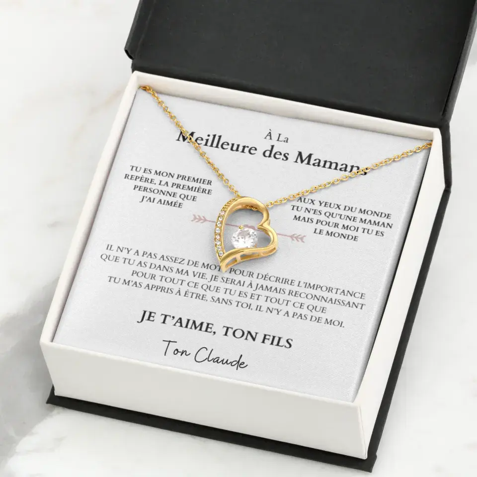 À la meilleure des mamans - Collier avec pendentif coeur & carte personnalisée