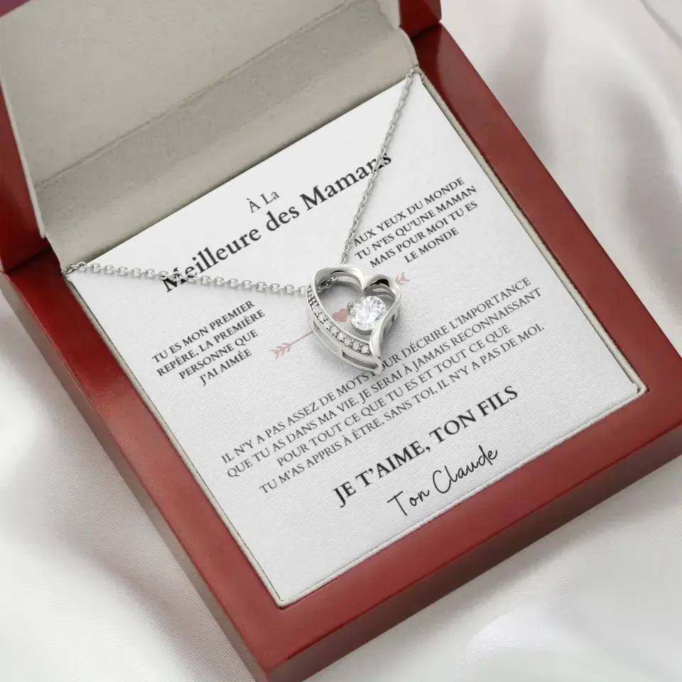 À la meilleure des mamans - Collier avec pendentif coeur & carte personnalisée