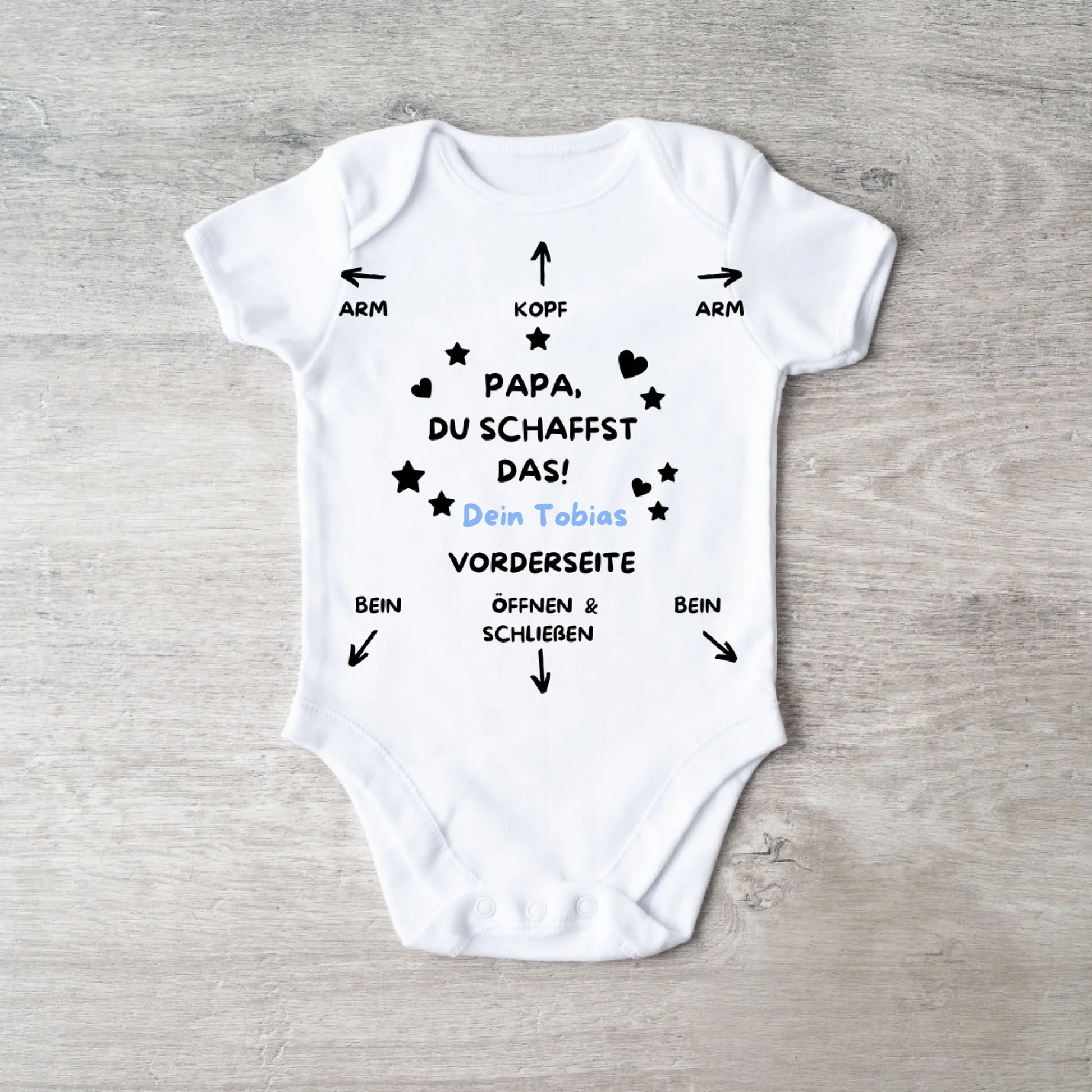 Papa du schaffst das! - Personalisierter Baby-Onesie/ Strampler, Anleitung Baby, 100% Bio-Baumwolle Body