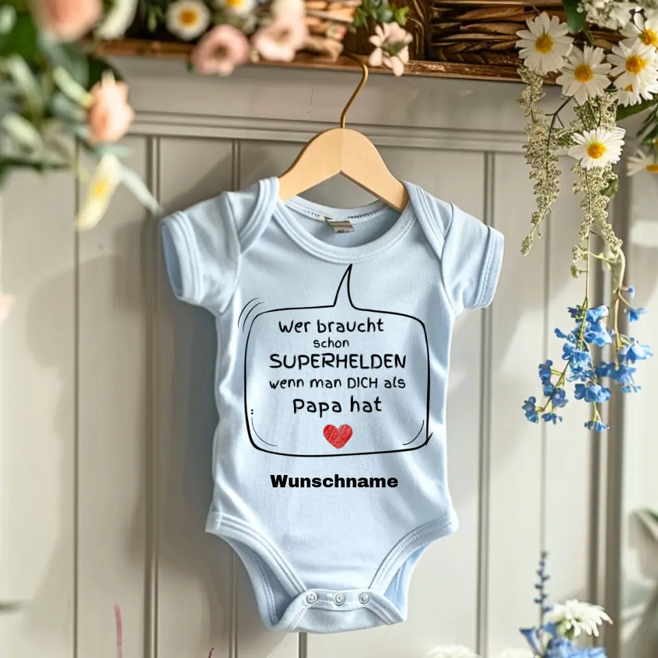 Superhelden Papa - Personalisierter Baby-Onesie/ Strampler, 100% Bio-Baumwolle